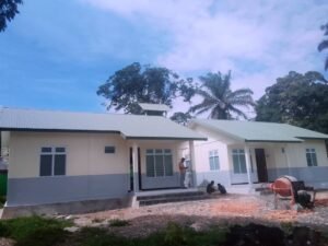 Konstrusaun uma ba Pesoal Saúde iha Sentru Saúde Ossoqueli kada uma ida kuartu rua, sala bainaka, haris fatin, sala dapur no kompleta fasilidade uma laran hanesan kama, armariu, kadeira, meza no fasilidade seluk.